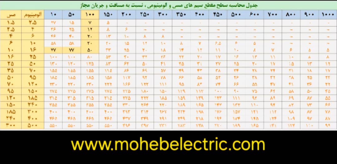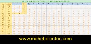 محاسبه سطح مقطع کابل (جدول انواع سایز کابل برق )